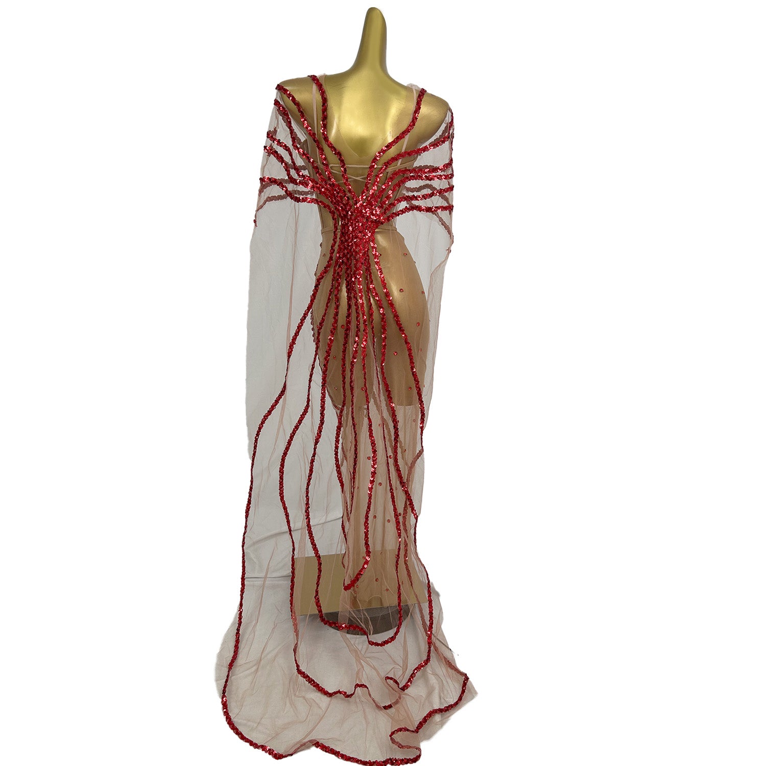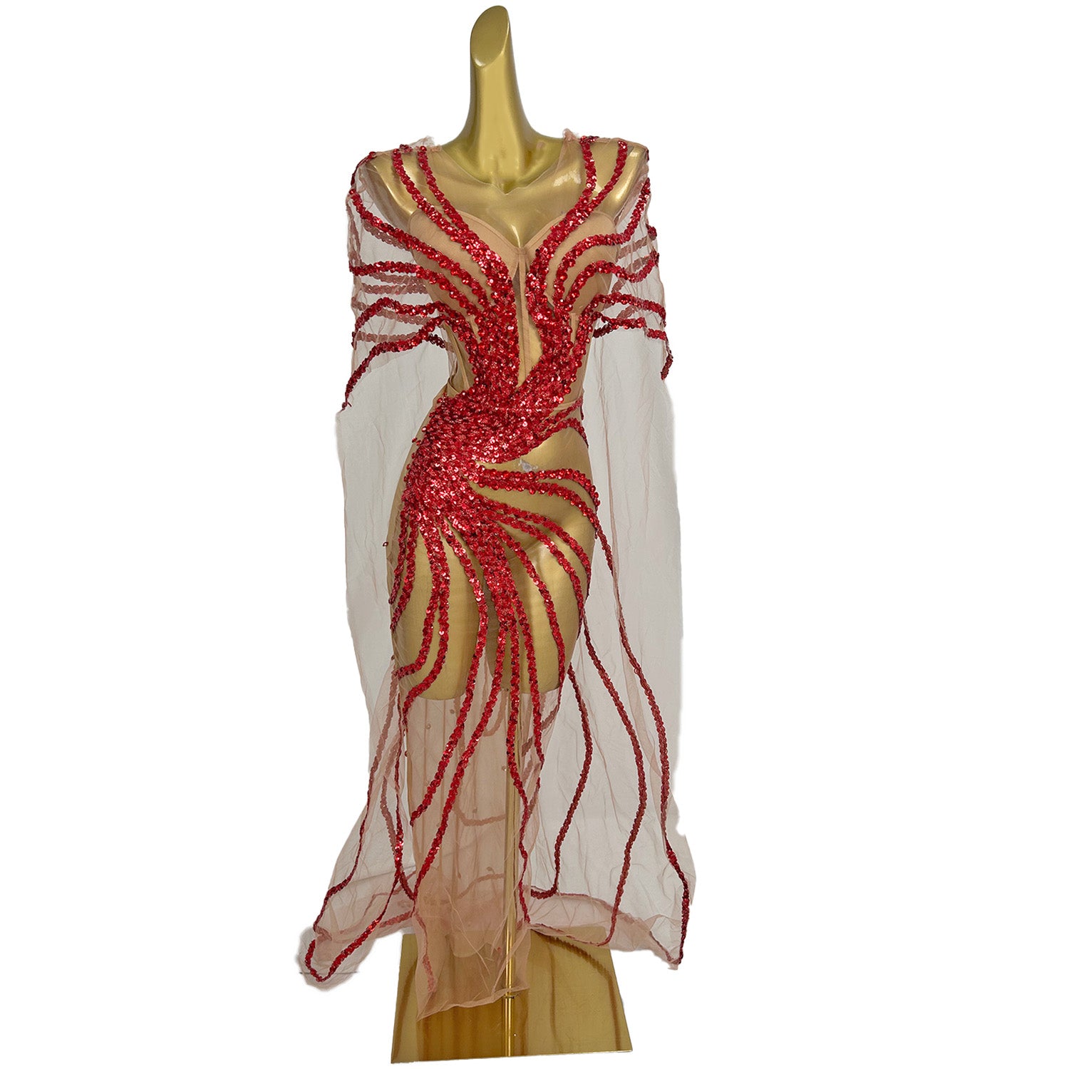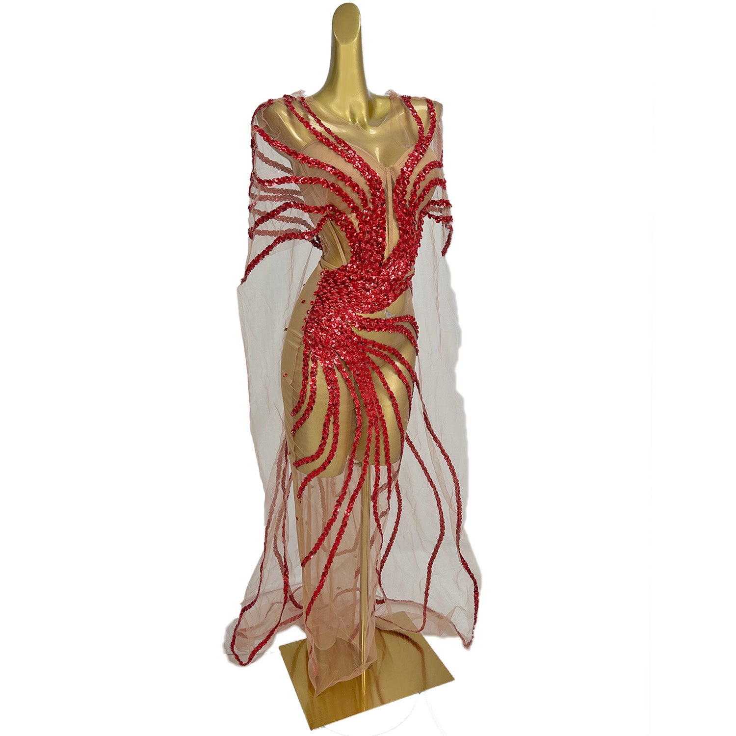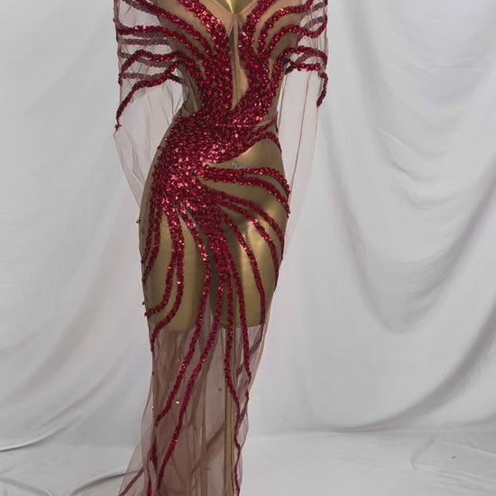 Dongmai Perspective Red Glitter Sequin Evening Prom Dress