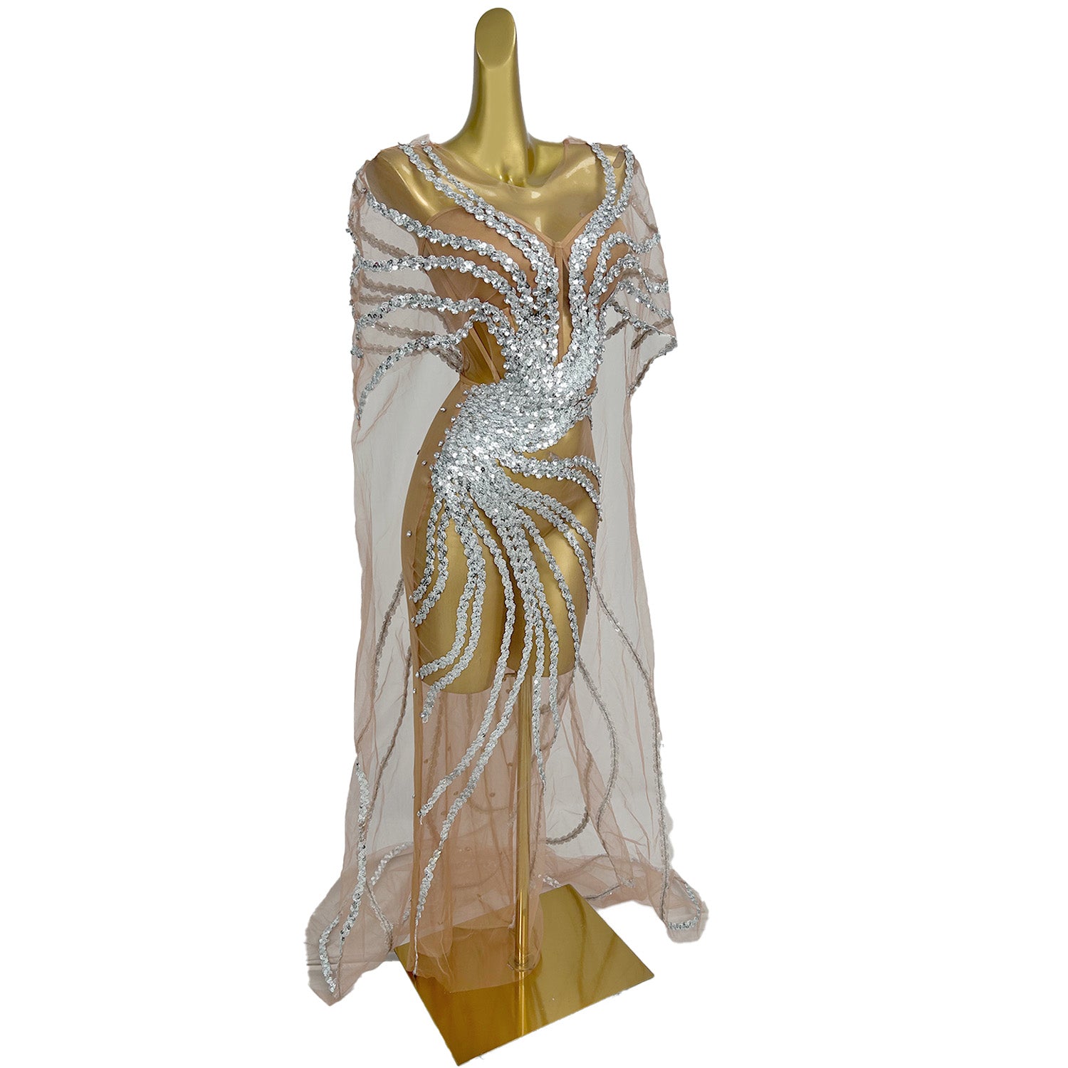 Step into the spotlight with the Shining Rhinestone Tassel Dress, a showstopping piece that combines the allure of sparkling crystals with the grace of flowing tassels. This dress is not just an accessory but a statement piece, designed to make you the center of attention at any event. Whether you're a singer, a dancer, or a showgirl, this dress is tailored to elevate your performance and make you stand out. The free size and elastic mesh construction ensure a comfortable fit for a wide range of body types, making it a versatile choice for various occasions.