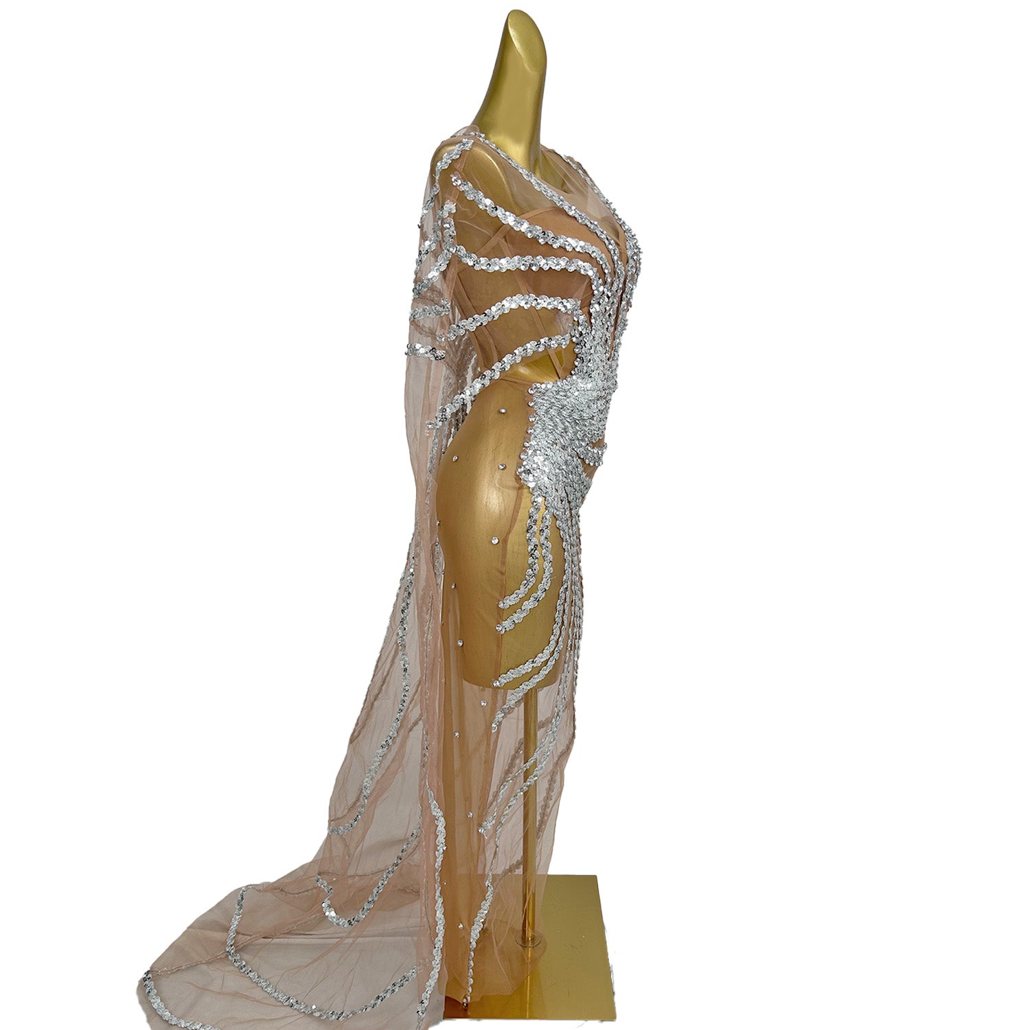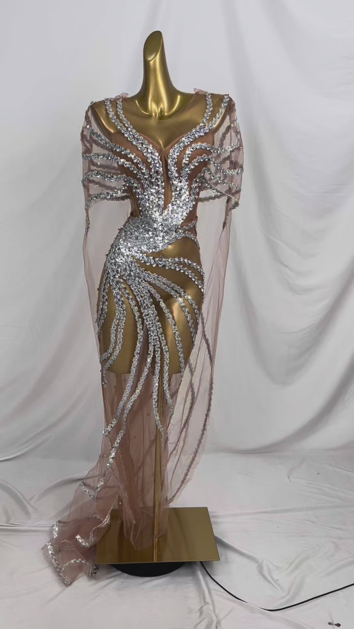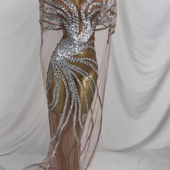 Dongmai Perspective Silver Glitter Sequin Evening Prom Dress