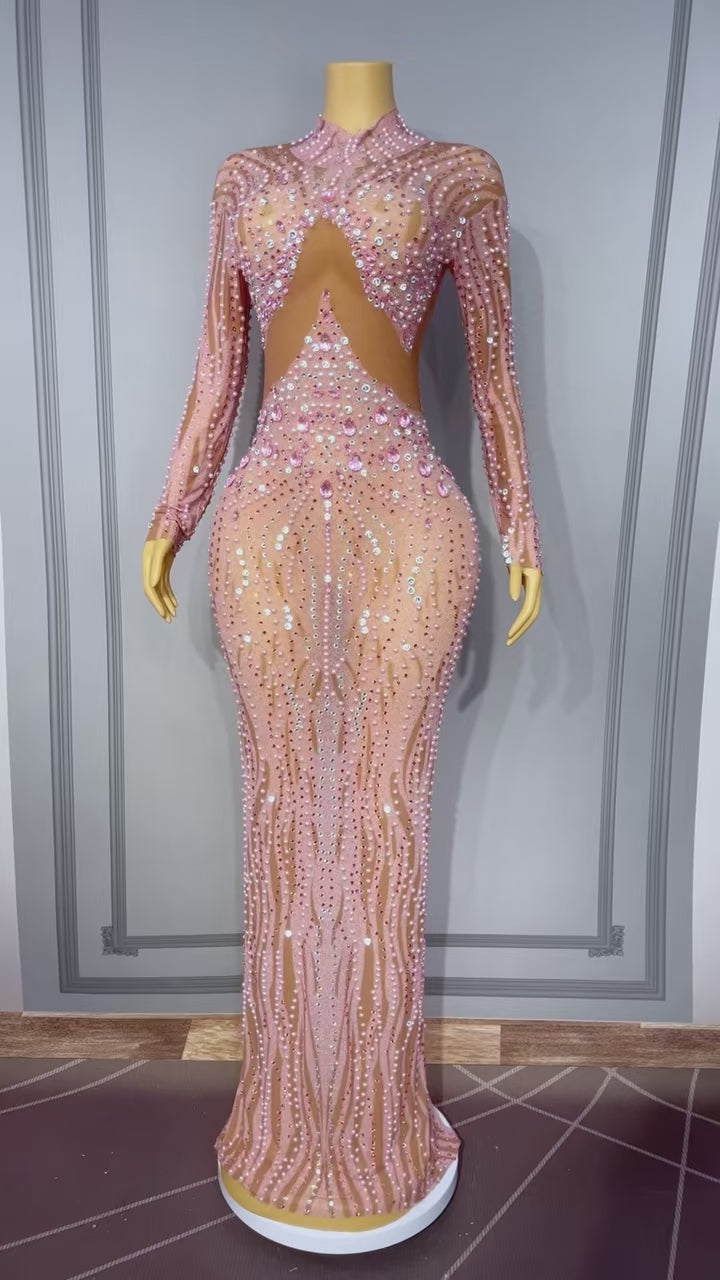 The Perspective Shining Sparkly Crystal Tassel Sexy Women Long Dress is a testament to the finest in evening wear. This luxury fashion dress is not just an outfit; it's a statement of elegance and sophistication. The meticulous craftsmanship is evident in the sparkling crystals that adorn the dress, creating a shimmering effect that captures the light and draws attention. The tassel detail adds a playful yet glamorous touch, making it a standout piece for any evening event.