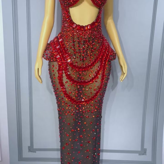 Hongguan Hollow-out Red Diamonds Long Prom Dresses