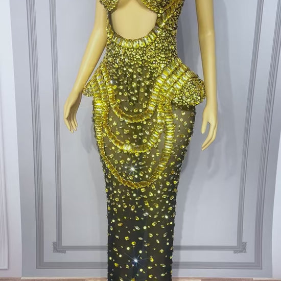 Hongguan Hollow-out Gold Diamonds Long Prom Dresses