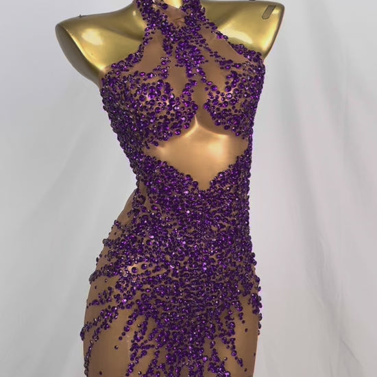 Huatuo Sparkly Purple Crystal Prom Dresses