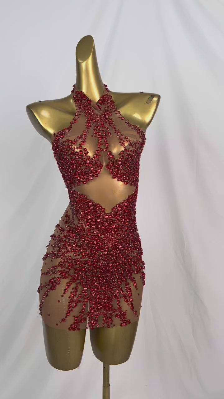 Huatuo Sparkly Red Crystal Prom Dresses