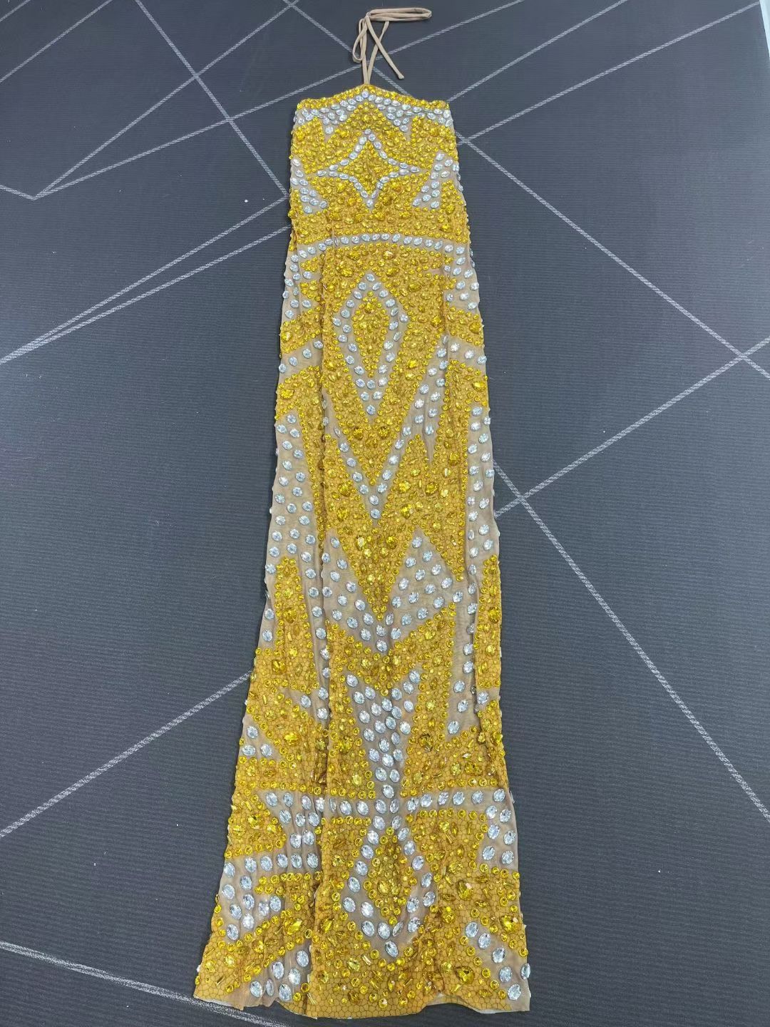 Step into the spotlight with the Shining Rhinestone Tassel Dress, a showstopping piece that combines the allure of sparkling crystals with the grace of flowing tassels. This dress is not just an accessory but a statement piece, designed to make you the center of attention at any event. Whether you're a singer, a dancer, or a showgirl, this dress is tailored to elevate your performance and make you stand out. The free size and elastic mesh construction ensure a comfortable fit for a wide range of body types, making it a versatile choice for various occasions.