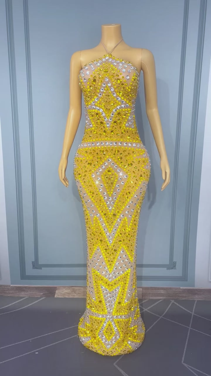 Jinjingying Strapless Backless Diamond-Embellished Gown