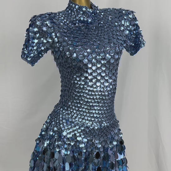 Jinsique Sexy Blue Shell Sequins Mini Dress