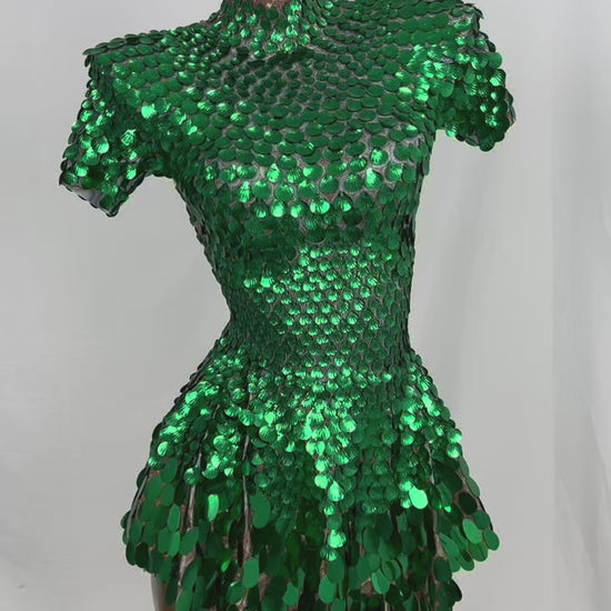Jinsique Sexy Green Shell Sequins Mini Dress