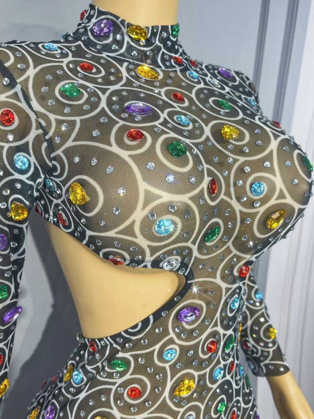 The stretch mesh net perspective design allows for a flattering silhouette while maintaining breathability, perfect for those high-energy performances. The solid super stretch lycra spandex material ensures a snug fit that moves with you, providing both comfort and flexibility. The mirror hoco dress's unique style is a nod to Latin celebrity fashion, making it a must-have for those looking to emulate the glamour of Latin dance and evening party attire.