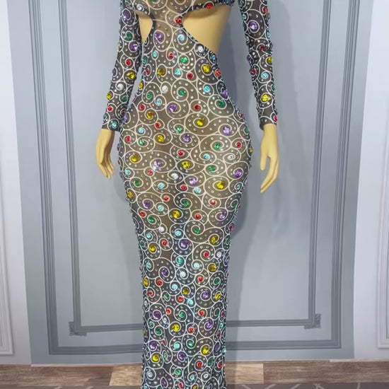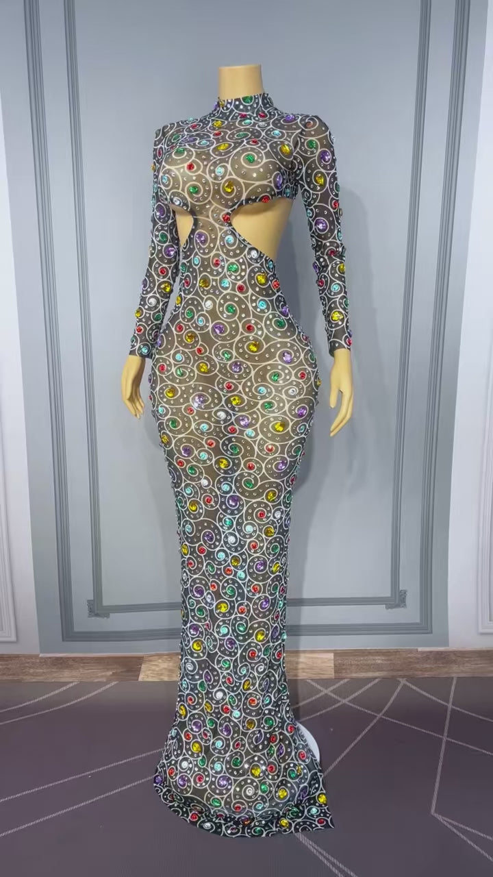 Manhanquanxi Hollow Out Diamond Floor-Length Dresses