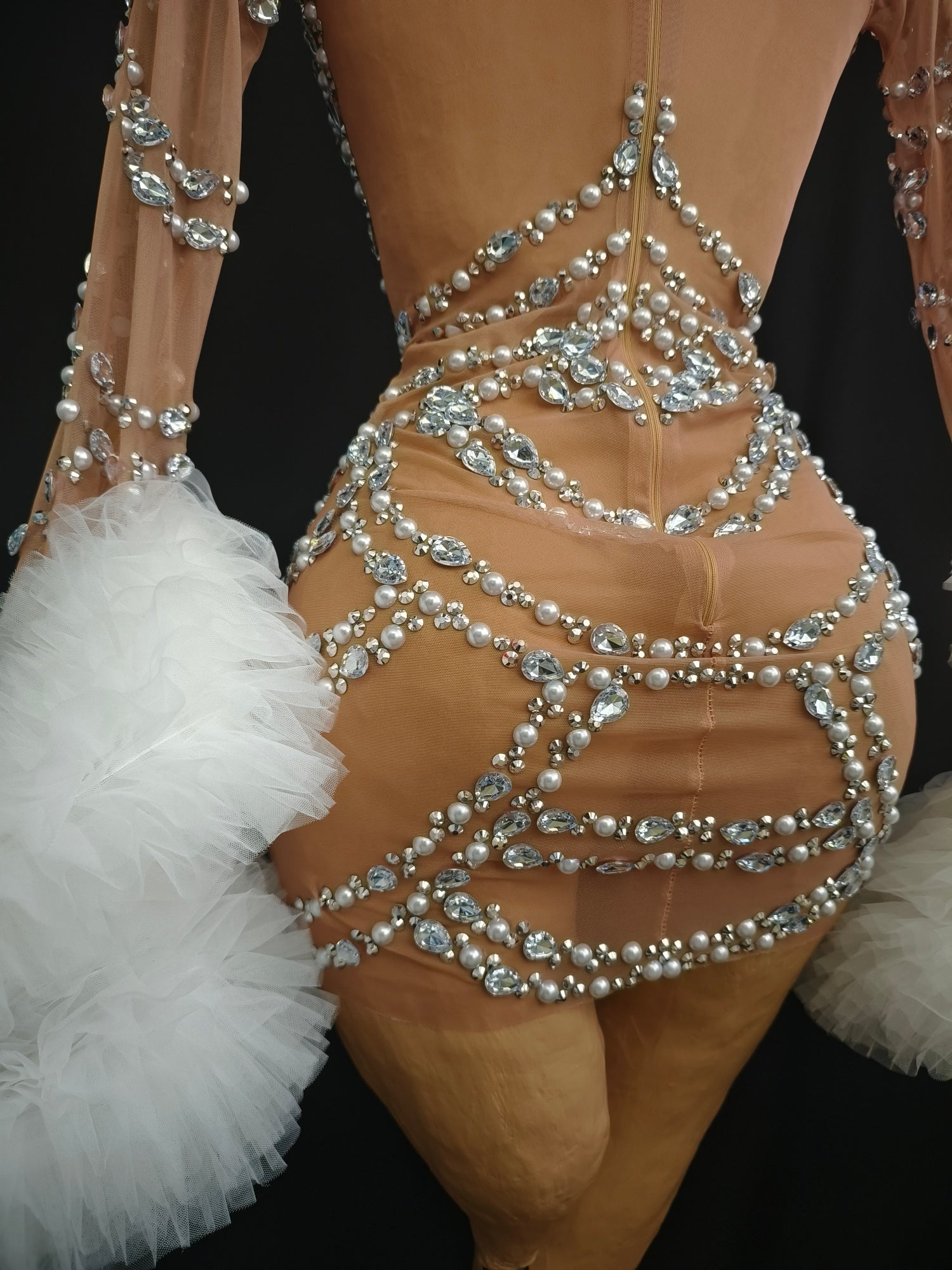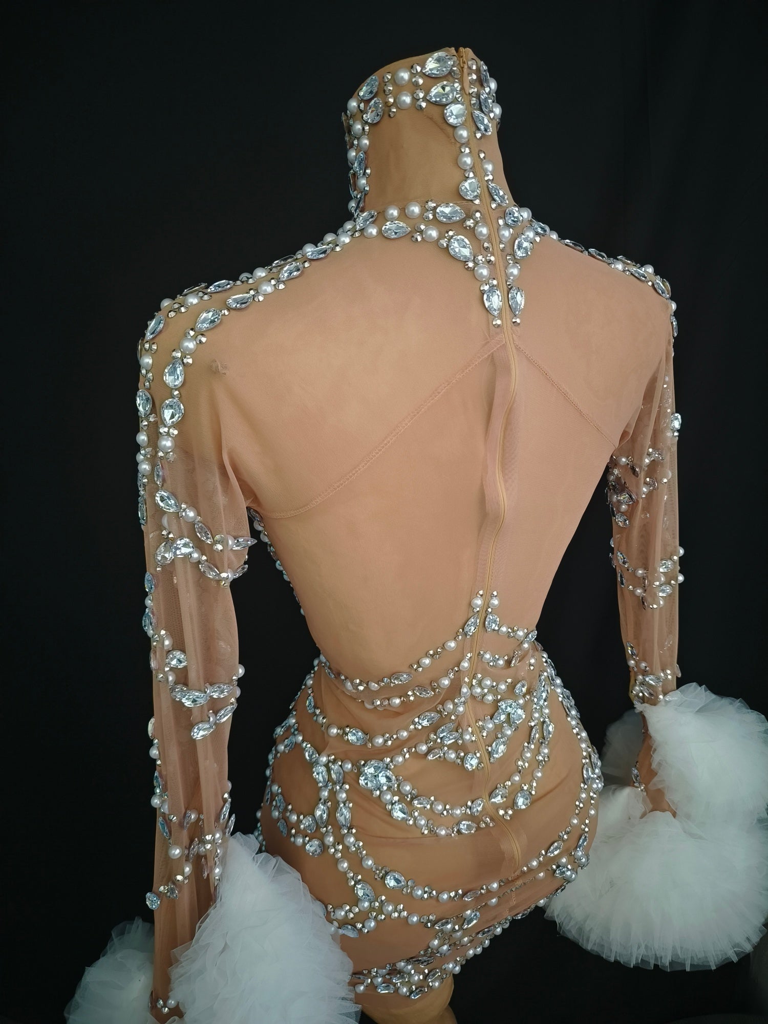 Step into the spotlight with the Shining Rhinestone Tassel Dress, a showstopping piece that combines the allure of sparkling crystals with the grace of flowing tassels. This dress is not just an accessory but a statement piece, designed to make you the center of attention at any event. Whether you're a singer, a dancer, or a showgirl, this dress is tailored to elevate your performance and make you stand out. The free size and elastic mesh construction ensure a comfortable fit for a wide range of body types, making it a versatile choice for various occasions.