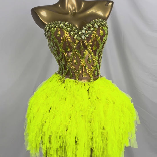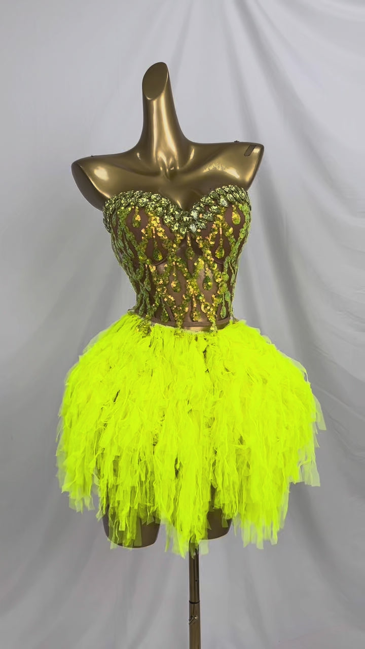 Step into the spotlight with the Shining Rhinestone Tassel Dress, a showstopping piece that combines the allure of sparkling crystals with the grace of flowing tassels. This dress is not just an accessory but a statement piece, designed to make you the center of attention at any event. Whether you're a singer, a dancer, or a showgirl, this dress is tailored to elevate your performance and make you stand out. The free size and elastic mesh construction ensure a comfortable fit for a wide range of body types, making it a versatile choice for various occasions.