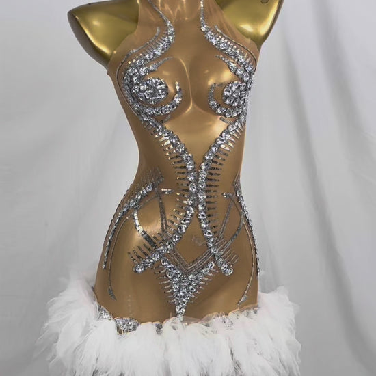 Step into the spotlight with the Shining Rhinestone Tassel Dress, a showstopping piece that combines the allure of sparkling crystals with the grace of flowing tassels. This dress is not just an accessory but a statement piece, designed to make you the center of attention at any event. Whether you're a singer, a dancer, or a showgirl, this dress is tailored to elevate your performance and make you stand out. The free size and elastic mesh construction ensure a comfortable fit for a wide range of body types, making it a versatile choice for various occasions.