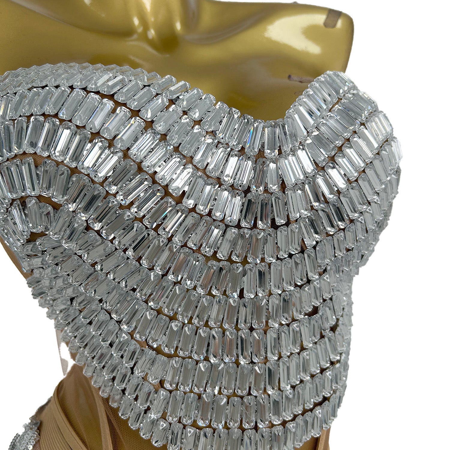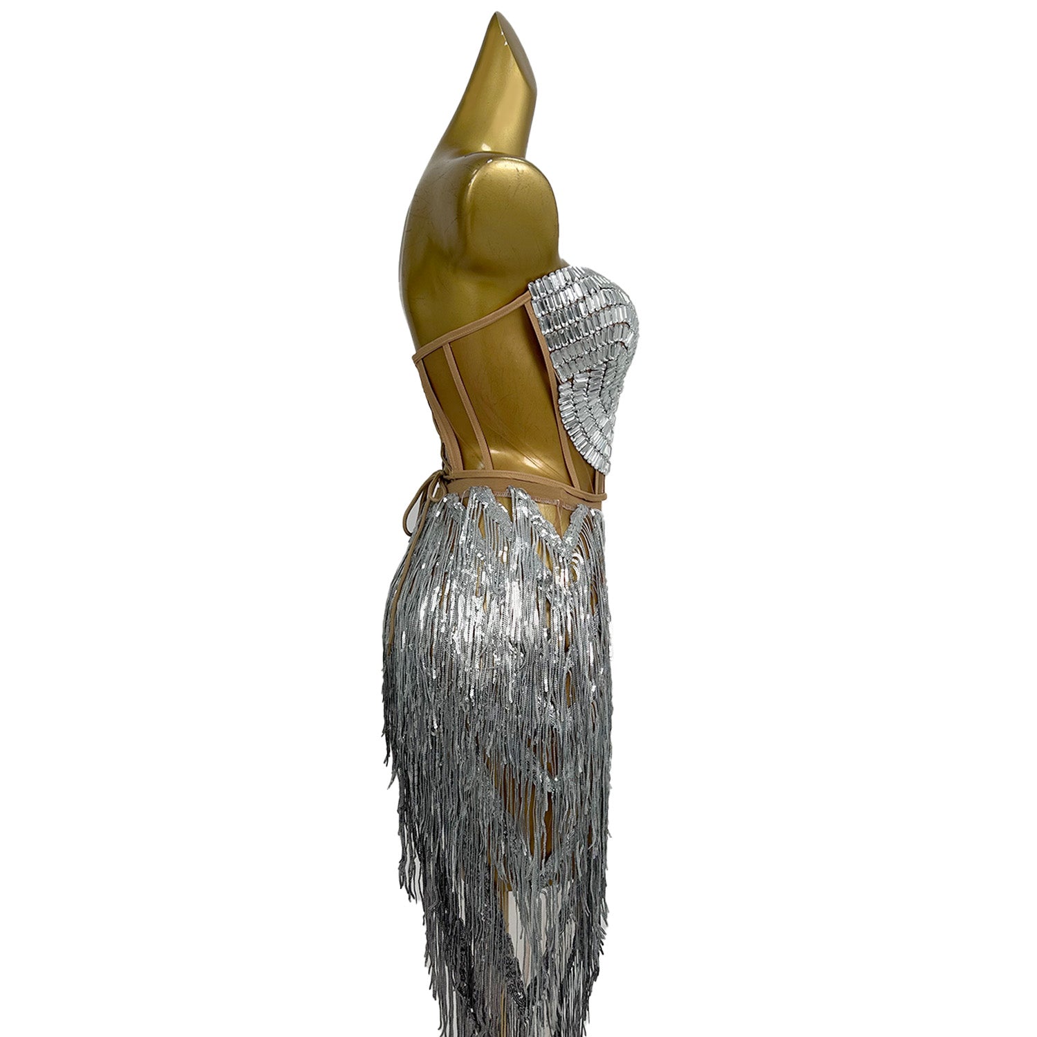Step into the spotlight with the Shining Rhinestone Tassel Dress, a showstopping piece that combines the allure of sparkling crystals with the grace of flowing tassels. This dress is not just an accessory but a statement piece, designed to make you the center of attention at any event. Whether you're a singer, a dancer, or a showgirl, this dress is tailored to elevate your performance and make you stand out. The free size and elastic mesh construction ensure a comfortable fit for a wide range of body types, making it a versatile choice for various occasions.