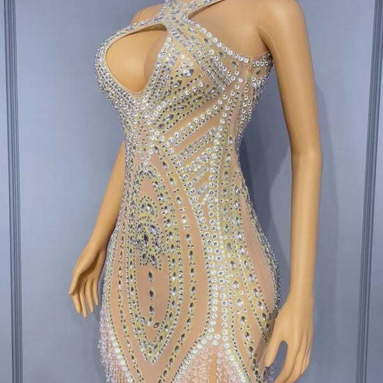 Wuqu Cut-out Design Crystal Pendant Neckline Mini Dress
