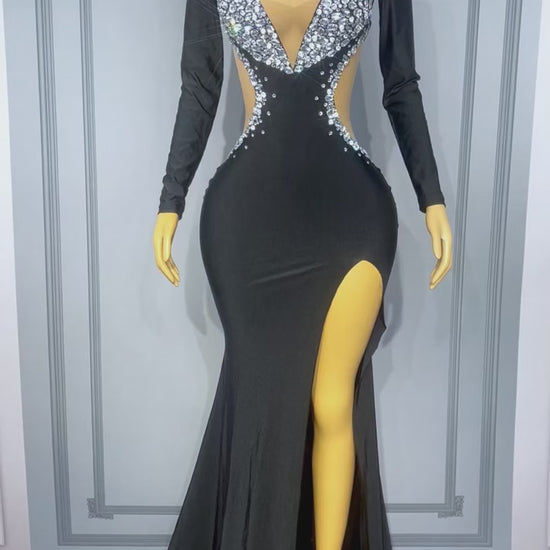 Wuyu Shoulder-padded Mermaid Dress with Openwork Detailing and High Slit