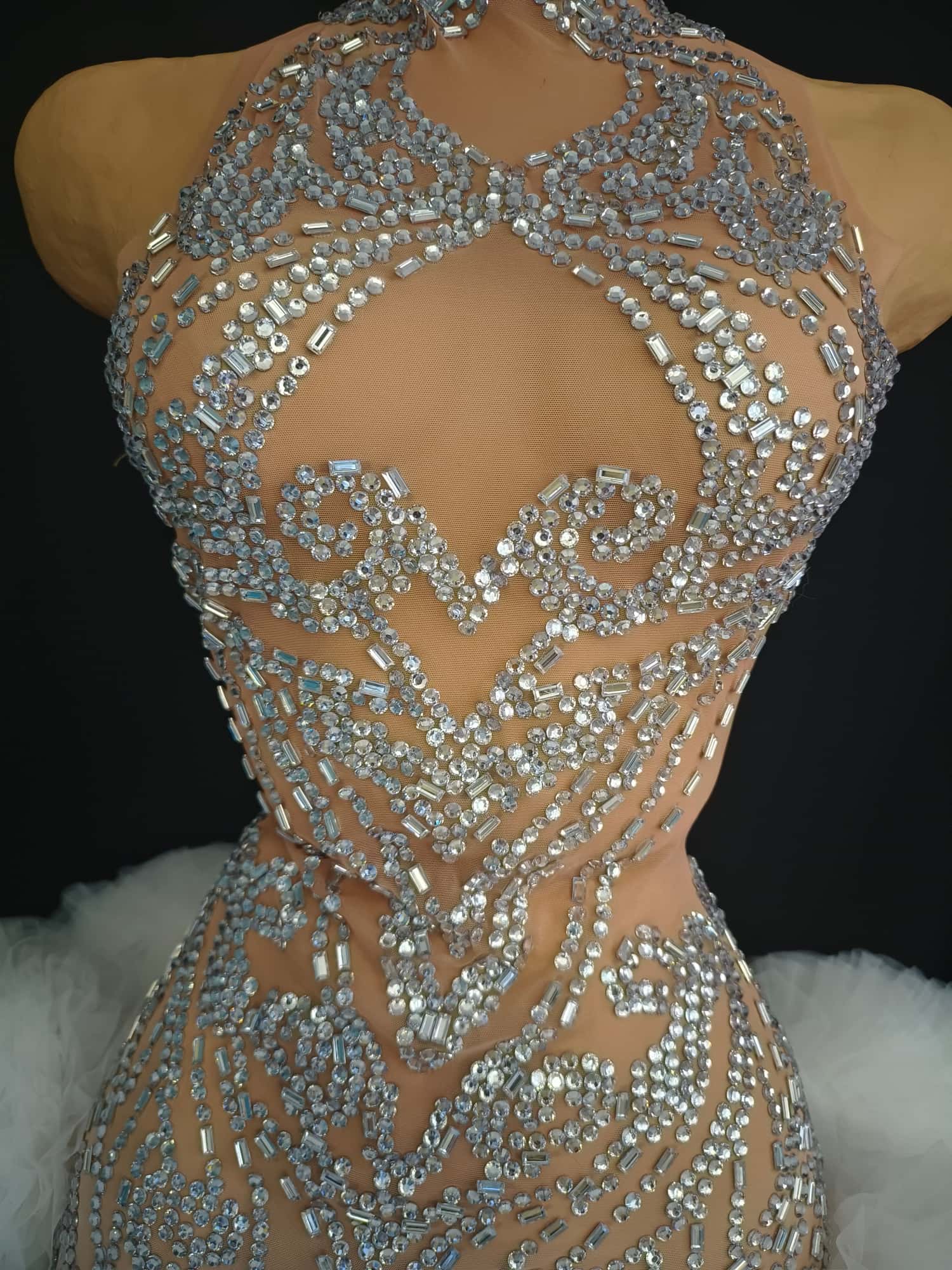 Step into the spotlight with the Shining Rhinestone Tassel Dress, a showstopping piece that combines the allure of sparkling crystals with the grace of flowing tassels. This dress is not just an accessory but a statement piece, designed to make you the center of attention at any event. Whether you're a singer, a dancer, or a showgirl, this dress is tailored to elevate your performance and make you stand out. The free size and elastic mesh construction ensure a comfortable fit for a wide range of body types, making it a versatile choice for various occasions.