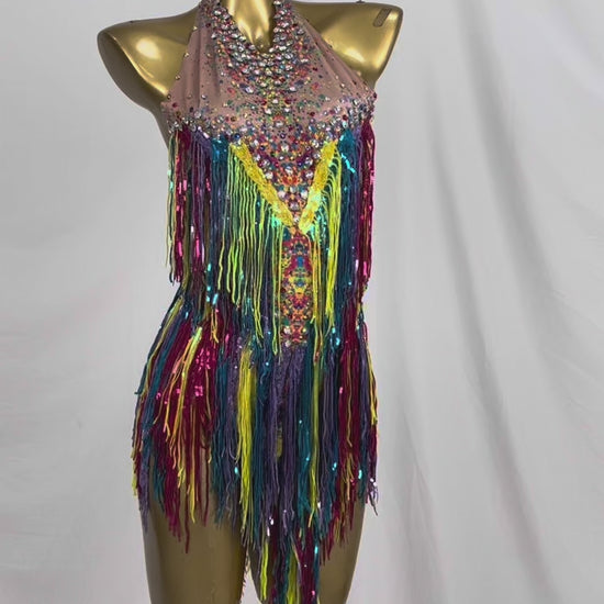 Xinwucai Women Colorful Rainbow Tassel Leotard